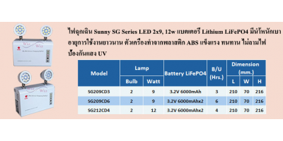 ![]() | SG Series ไฟฉุกเฉิน Emergency light SUNNY SG Series ตั้งวางบนชั้นและติดผนัง |