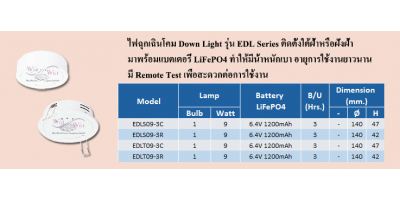 ![]() | EDL Series ไฟฉุกเฉิน Emergency light SUNNY EDL Series ติดเพดาน และฝังฝ้าเพดาน |